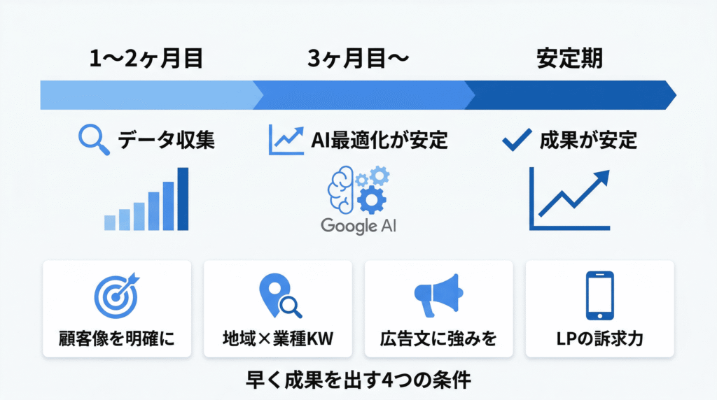 「リスティング広告を始めたら、いつ頃から成果が出るのか」は、店舗オーナーが最も気になるポイントだと思います。