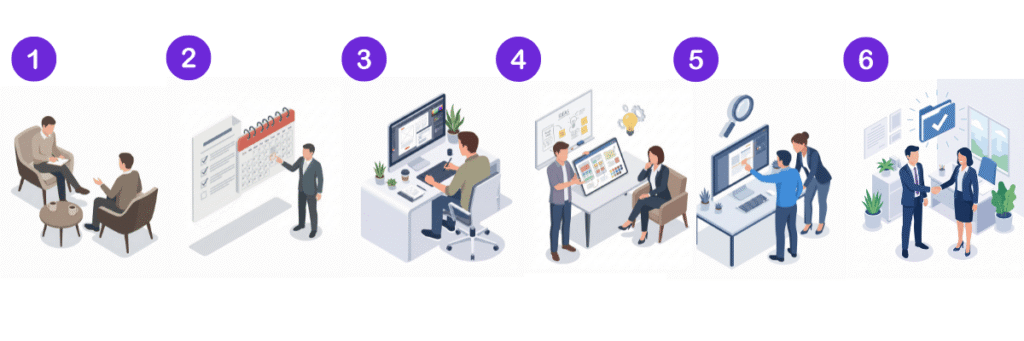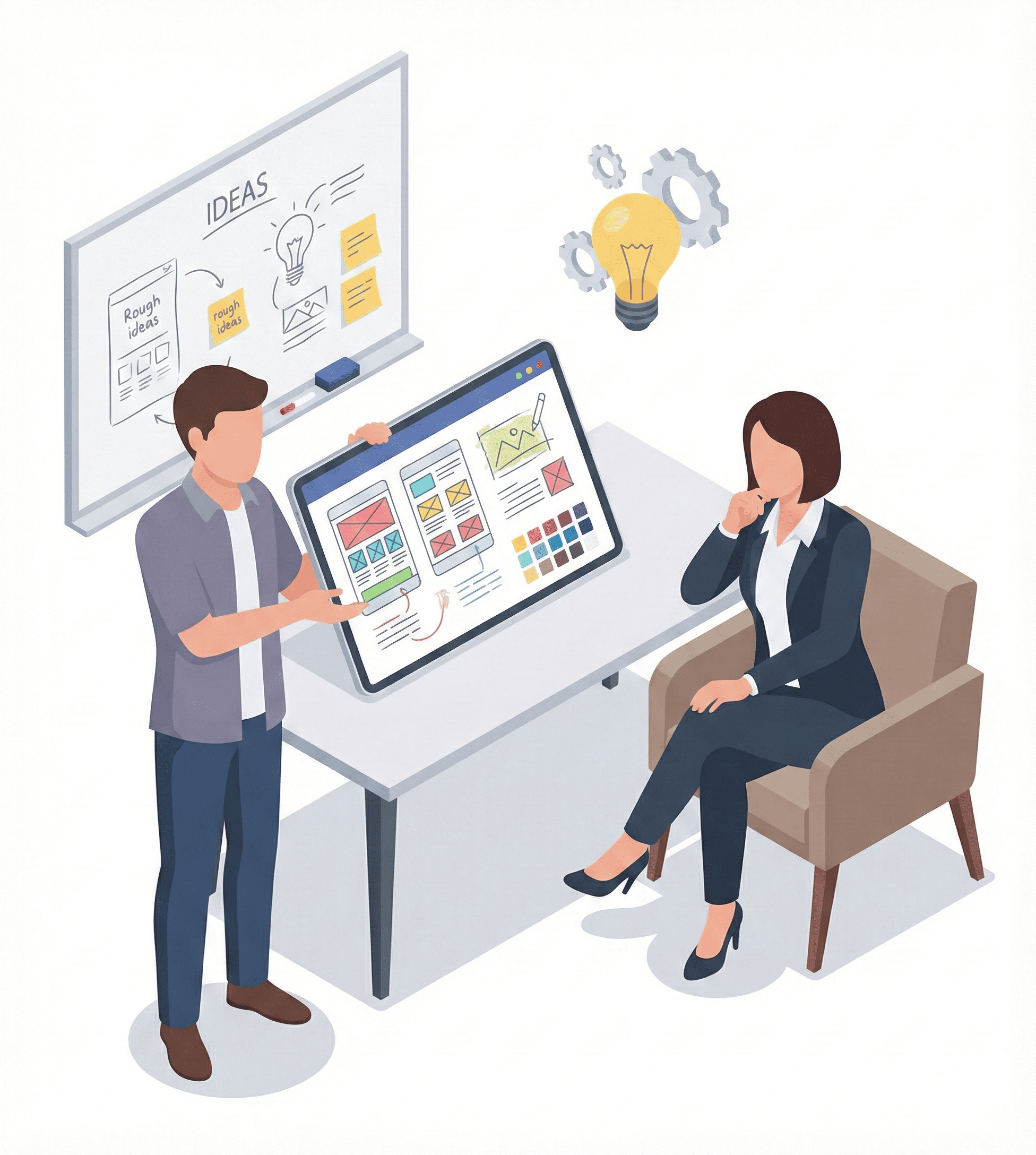 制作物の目的やターゲット、ご希望のテイスト、サイズや点数、希望納期などを丁寧にお伺いします。参考イメージ(好きなデザイン例)や、現在のお悩み・課題があれば併せて共有いただくことで、方向性のズレを防ぎます。イメージが固まっていない場合でも、用途や状況を整理しながら一緒に形にしていきますのでご安心ください。