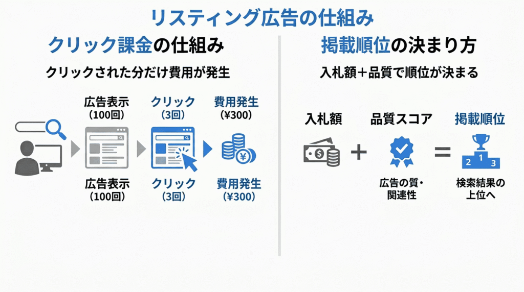 費用の発生タイミング、掲載順位の決まり方、この2点を理解しておくと、実際に運用するときの判断がしやすくなります。