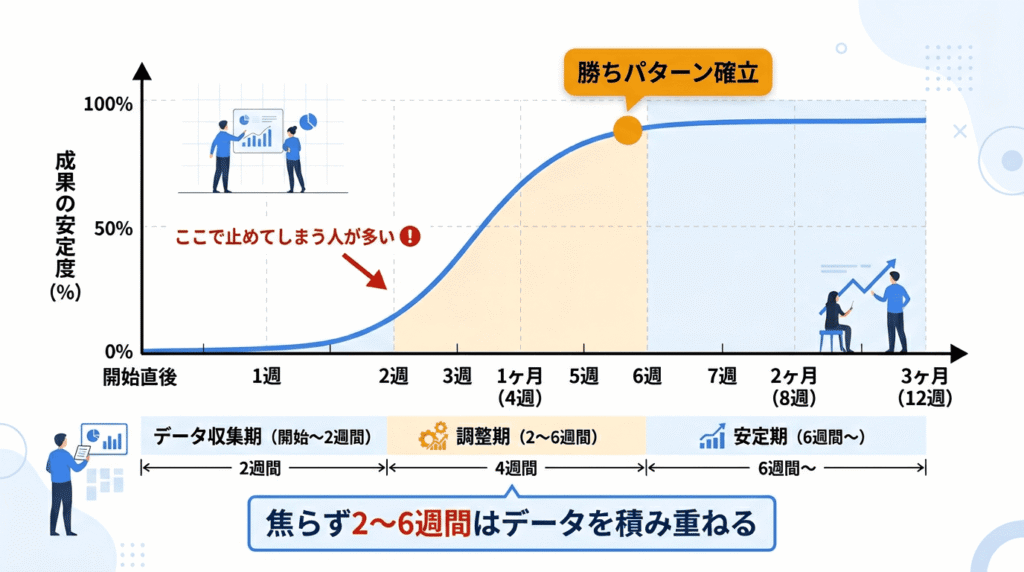 データを積み重ねながら調整を繰り返すことで、少しずつ成果が安定していきます。