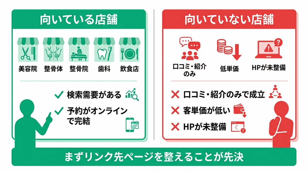 リスティング広告はすべての店舗に効果的かというと、そうではありません。